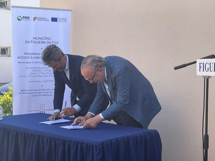 Foram ainda assinados dois contratos de comparticipação que preveem a reabilitação total de 145 habitações num investimento global de cerca de 6,5 milhões de euros financiados pelo Plano de Recuperação e Resiliência (PRR).
